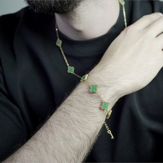 BRAZALETE CLOVER - GOLD MALAQUITA