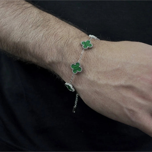 BRAZALETE CLOVER - SILVER MALAQUITA
